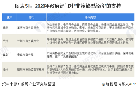 2020年疫情期间,由于新型冠状病毒较大的传染性,多家政府部门呼吁市民减少外出购物、娱乐等消费活动,并大力支持“无接触”服务,重庆、兰州、青岛、福州等多个城市先后呼吁企业和消费者积极推广使用“无接触”服务,推广“无接触配送”,优化配送模式与手段。