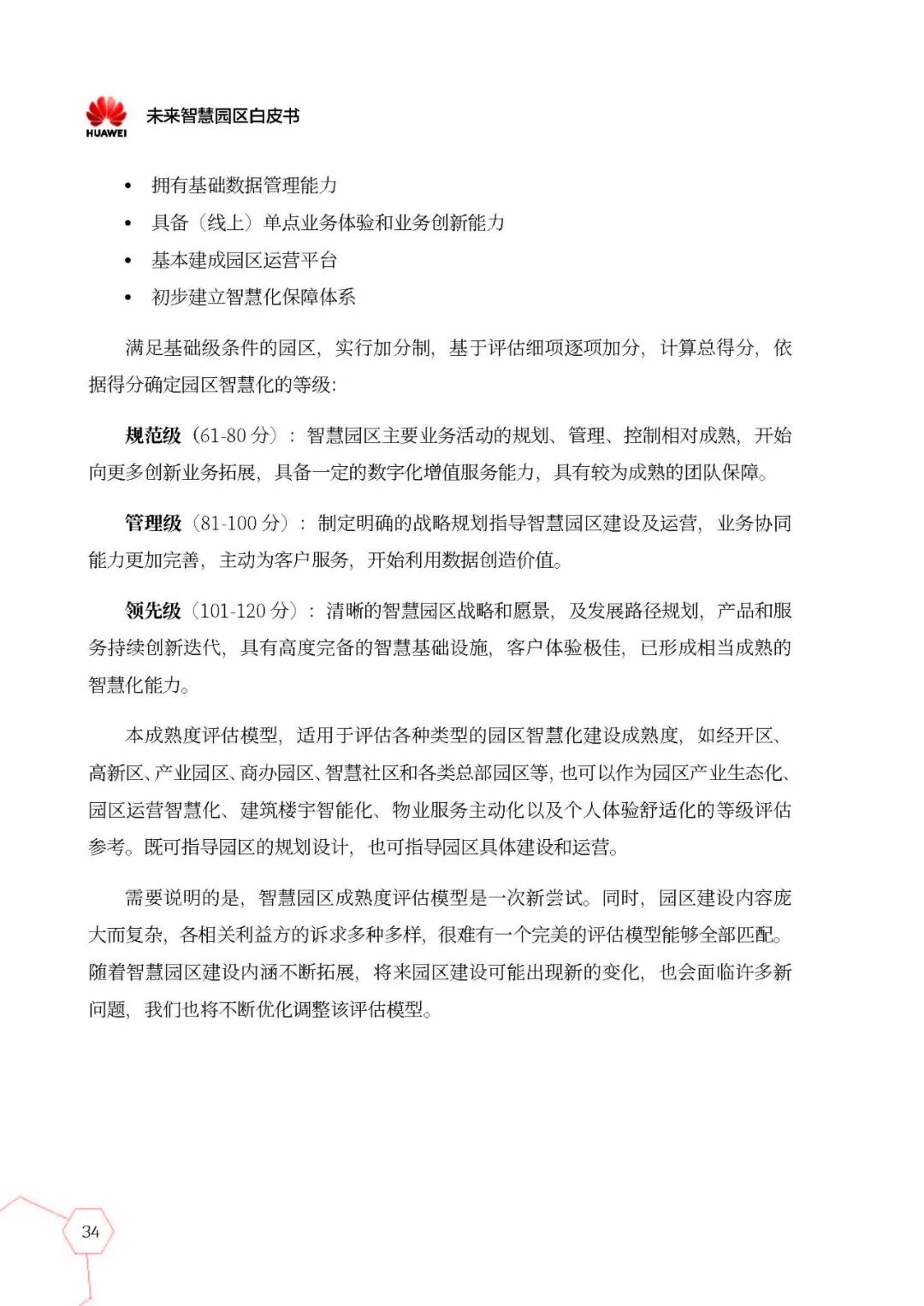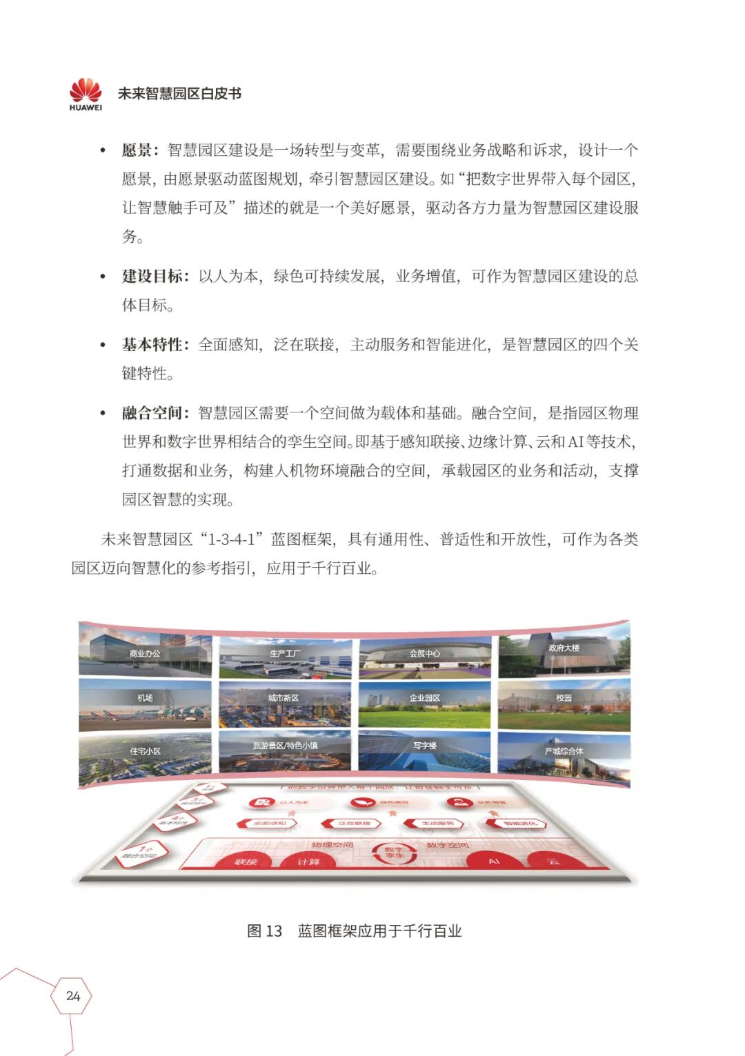 前日,华为联合埃森哲共同发布《未来智慧园区白皮书》,给出了具备前瞻性的未来智慧园区定义及内涵、系统阐述了未来智慧园区的特征及场景,创造性地抽象出指引未来智慧规划建设的统一蓝图架构,并首次定义了智慧园区成熟度评估模型。