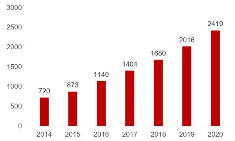 中国人工智能在线教育市场规模从2014年的54.9亿元增长至2020年368.3亿元,呈现快速增长趋势。随着人工智能技术日趋成熟,人工智能在线教育产品性能将进一步提升,用户规模将不断扩张,人工智能在线教育市场规模有望迎来新一轮快速增长。