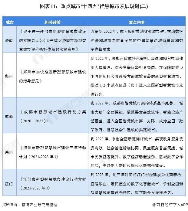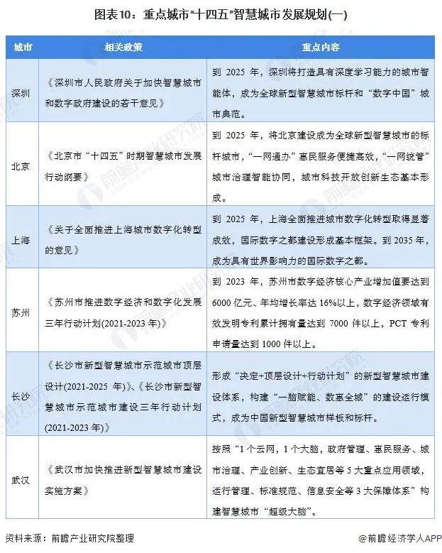 2021年,北京、上海、深圳等智慧城市领头示范城市发布了相关政策,制定了相关规划,不约而同将智慧城市写入了2021年的首要发展任务,正式拉开了“十四五”开局之年的智慧城市新篇章。例如深圳市政府在2021年1月发布《深圳市人民政府关于加快智慧城市和数字政府建设的若干意见》,提出到2025年,深圳将打造具有深度学习能力的城市智能体,成为全球新型智慧城市标杆和“数字中国”城市典范。